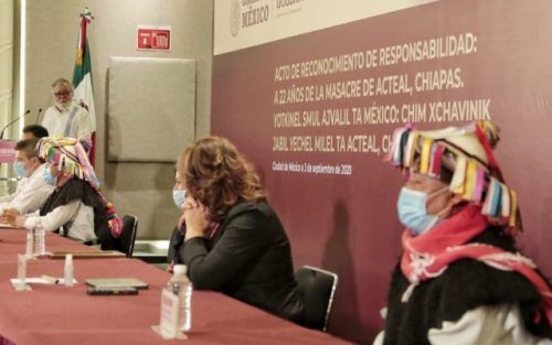 Ciudad de México, 3 de septiembre 2020.-A casi 23 años del asesinato de 45 indígenas tzotziles en el municipio de Chenalhó, estado de Chiapas, el Gobierno de México reconoció su responsabilidad en la conocida ‘masacre de Acteal‘.