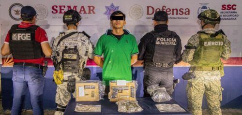 En una primera acción, los agentes participantes capturaron Abraham “N” cuando circulaba sobre avenida Arco Norte, entre Palma Canario y Palma Paraíso, en la Supermanzana 260.