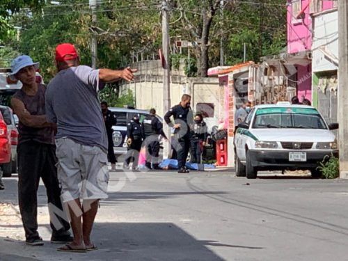 El caso es similar al de la semana pasada en la avenida Leona Vicario frente a la supermanzana 232, donde también un sujeto fue ejecutado en plena banqueta y a la luz del día.