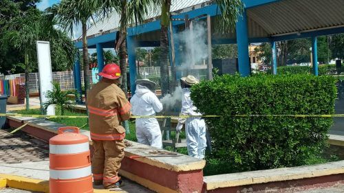 Elementos de seguridad publica dieron parte al director de protección civil Alex Eroza Betancourt quien, junto con elementos a su mando, llegaron para capturar a los insectos que colocaron en bolsas y se lo entregaron a un apicultor que pasaba en el lugar para llevarlos a su apiario evitando, con ello, el exterminio de los peligrosos insectos.