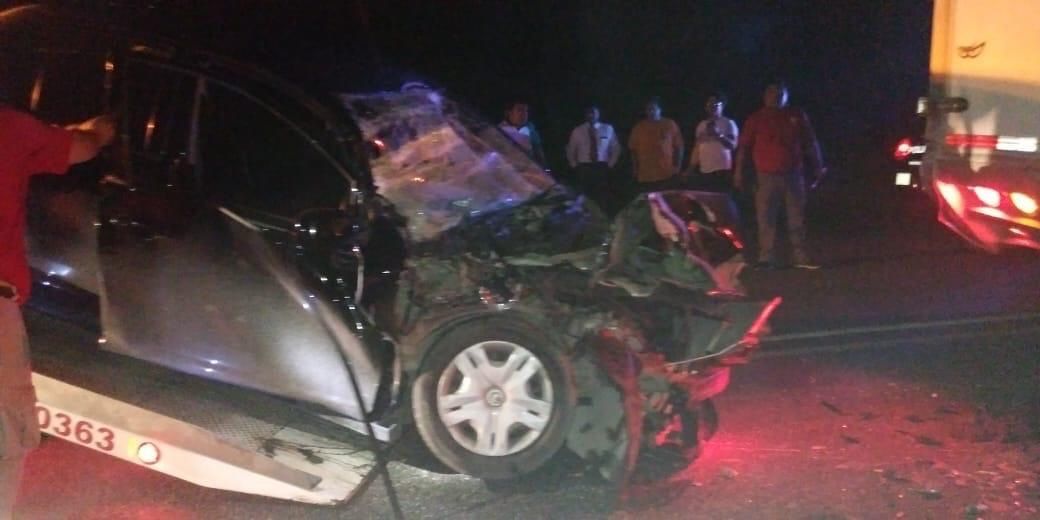 El segundo accidente ocurrió en esa misma zona, cuando dos sujetos que viajaban a bordo de un vehículo, bajo los influjos del alcohol, lo estrellaron en la parte posterior de un camión tipo torton, estacionado en espera de cruzar el tramo del accidente.
