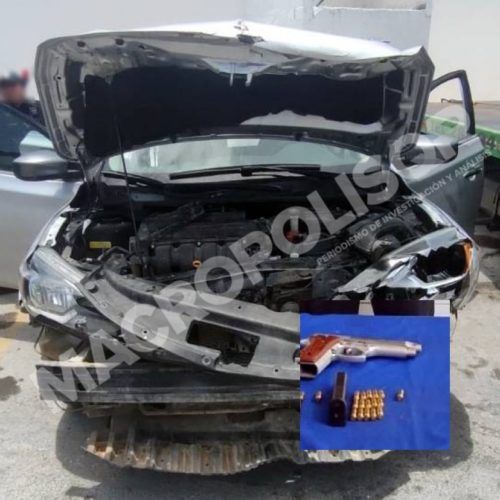 Cancún, Quintana Roo, 22 de mayo 2021.- Un hombre fue detenido por policías municipales, en posesión de un arma de fuego, sobre avenida José López Portillo; lo antes dicho tras un accidente vehicular.