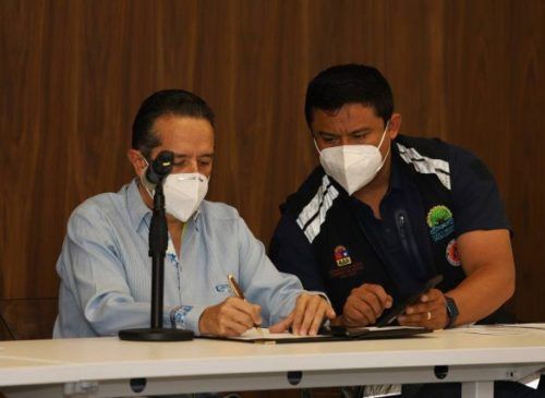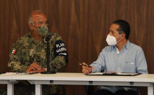 En la actualización de la trayectoria de la Tormenta Tropical estuvo presente la doctora Martha Leticia Otero López, directora local de Conagua en el estado; el Vicealmirante Javier Abarca García Comandante de la 5a Región Naval y el Secretario de Seguridad Pública, Lucio Hernández Gutiérrez.
