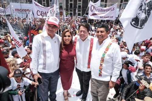 Horas antes de recibir su constancia que la acredita como gobernadora electa, participó en el acto convocado por la dirigencia nacional y en el que afirmó que el corazón de la Cuarta Transformación son las mujeres.