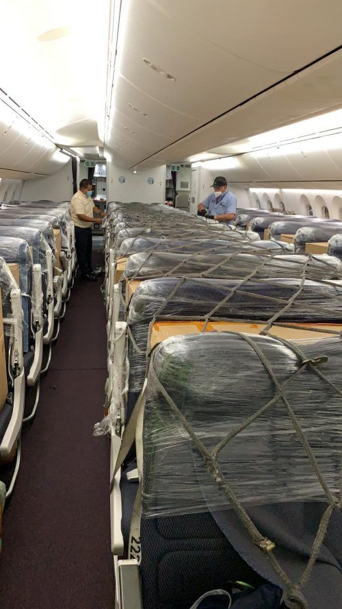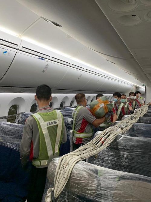 Fue utilizado uno de los 19 aviones Boeing 787 de la aerolínea, en una operación chárter privada para transportar carga inclusive en la cabina de pasajeros. Este equipo es uno de los más modernos, eficientes y menos contaminantes del mundo. Emite57% menos contaminación auditiva en el despegue y aterrizaje,y 20% menos de emisiones de dióxido de carbono (CO2), respecto de otras aeronaves.