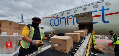 Durante la pandemia, la aerolínea bandera de México ha efectuado más de 350 vuelos chárter de carga, de los cuales en 235 se transportaron insumos médicos hacia México y otros 18 países, destacando 25 operaciones realizadas, sin beneficio económico alguno, en colaboración con el Gobierno de México bajo la coordinación de la Secretaría de Relaciones Exteriores.