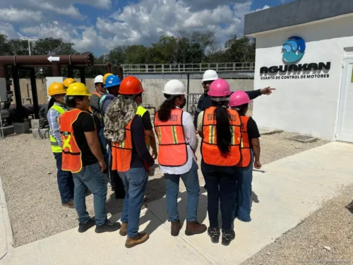 Entre las principales acciones, se realizaron pláticas en la Planta de Tratamiento de Aguas Residuales Norponiente II, en Cancún, donde estudiantes del CETMAR 4, la Universidad Humanitas, el Instituto Tecnológico de Cancún y representantes del sector hotelero conocieron de cerca los procesos de saneamiento del agua.