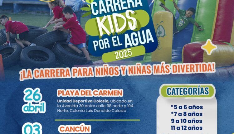 La “Carrera Kids por el Agua 2025” se llevará a cabo en dos fechas y en diferentes sedes. El sábado 26 de abril, los niños y sus familias podrán disfrutar de la carrera en Playa del Carmen, en la Unidad Deportiva Colosio. Por otro lado, el sábado 3 de mayo, la carrera se trasladará a Cancún, en el Estadio Toro Valenzuela.