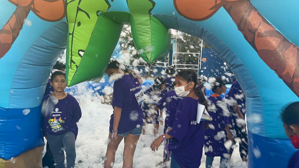 Organizada por Aguakan con motivo del día del Niño y la Niña, los más de 250 pequeños participantes recibieron una medalla al mérito por concluir el recorrido del circuito con divertidos obstáculos.