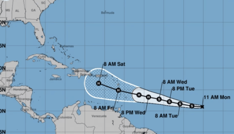 El ciclón estaba a dos mil 085 kilómetros al este de las Islas Barlovento del Sur y presentaba vientos máximos sostenidos de 65 kilómetros por hora (40 millas), con un movimiento hacia el oeste a 33 kilómetros por hora (21 millas), según el más reciente boletín del NHC.