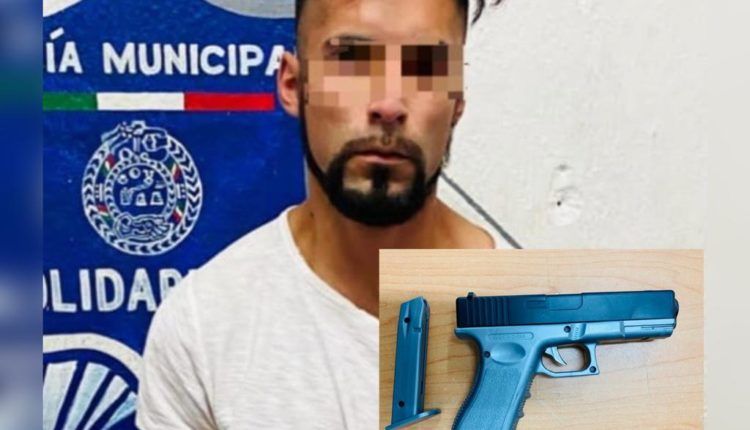 Playa del Carmen.- Policías de la Secretaría de Seguridad Pública y Tránsito Municipal de Solidaridad aseguraron a un sujeto que tenía en su posesión una réplica de arma de fuego, señalado de amenazar de muerte a una mujer, en el fraccionamiento Paseos Xcacel.