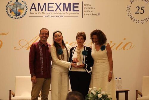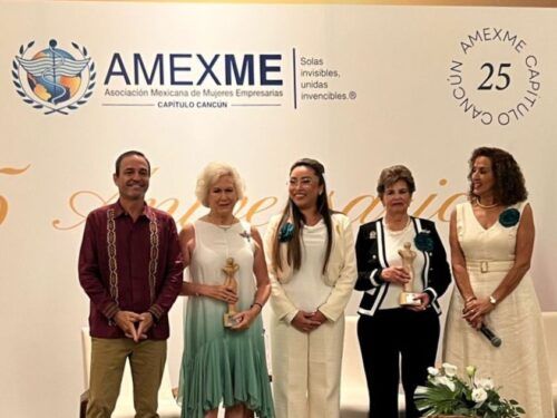 Durante el evento, celebrado en el Hotel Presidente de la zona hotelera, se entregaron reconocimientos a expresidentas y fundadoras de la organización, destacando su contribución a la consolidación de AMEXME Cancún.