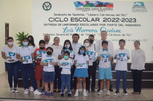 El líder del Sindicato de Taxistas Lázaro Cárdenas del Río entregó 100 uniformes para alumnos del Consorcio Educativo Riviera Maya