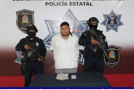 Cancún (Macropolis QR).- En Cancún policías detuvieron a un taxista, presunto tirador de drogas, cuando realizaban labores de vigilancia en la avenida 20 de Noviembre, en el Fraccionamiento La Selva.