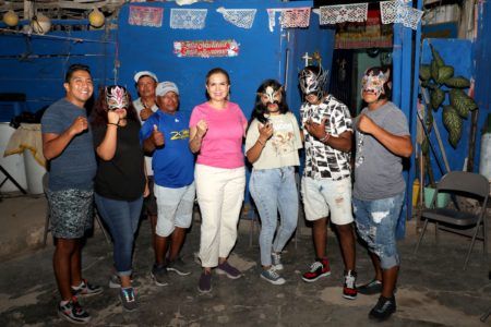 Playa del Carmen.-La lucha libre será incluida como un disciplina deportiva que se pueda enseñar a las nuevas generaciones al consolidar la renovación en Solidaridad, afirmó Lili Campos, candidata a la presidencia municipal de Solidaridad por la alianza “Fuerza y Corazón por Quintana Roo”, ante un grupo de luchadores con los que sostuvo una reunión en la colonia Luis Donaldo Colosio.