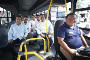 Por su parte, Rafael Aiza Yunes, director general del “Consorcio Empresarial del Sur TPE” agradeció la confianza del Gobierno Municipal y dio a conocer que las nuevas unidades cuentan con aire acondicionado, sistema de posicionamiento global, botiquín de primeros auxilios y extinguidores para una mayor seguridad del pasajero. Igualmente, debido a la posición geográfica de la ínsula, los autobuses de dicha zona son más pequeños, tienen alrededor de 7 metros de largo y caben 31 personas, en el caso de la Zona Continental son más grandes y tienen la capacidad para transportar 41 pasajeros.