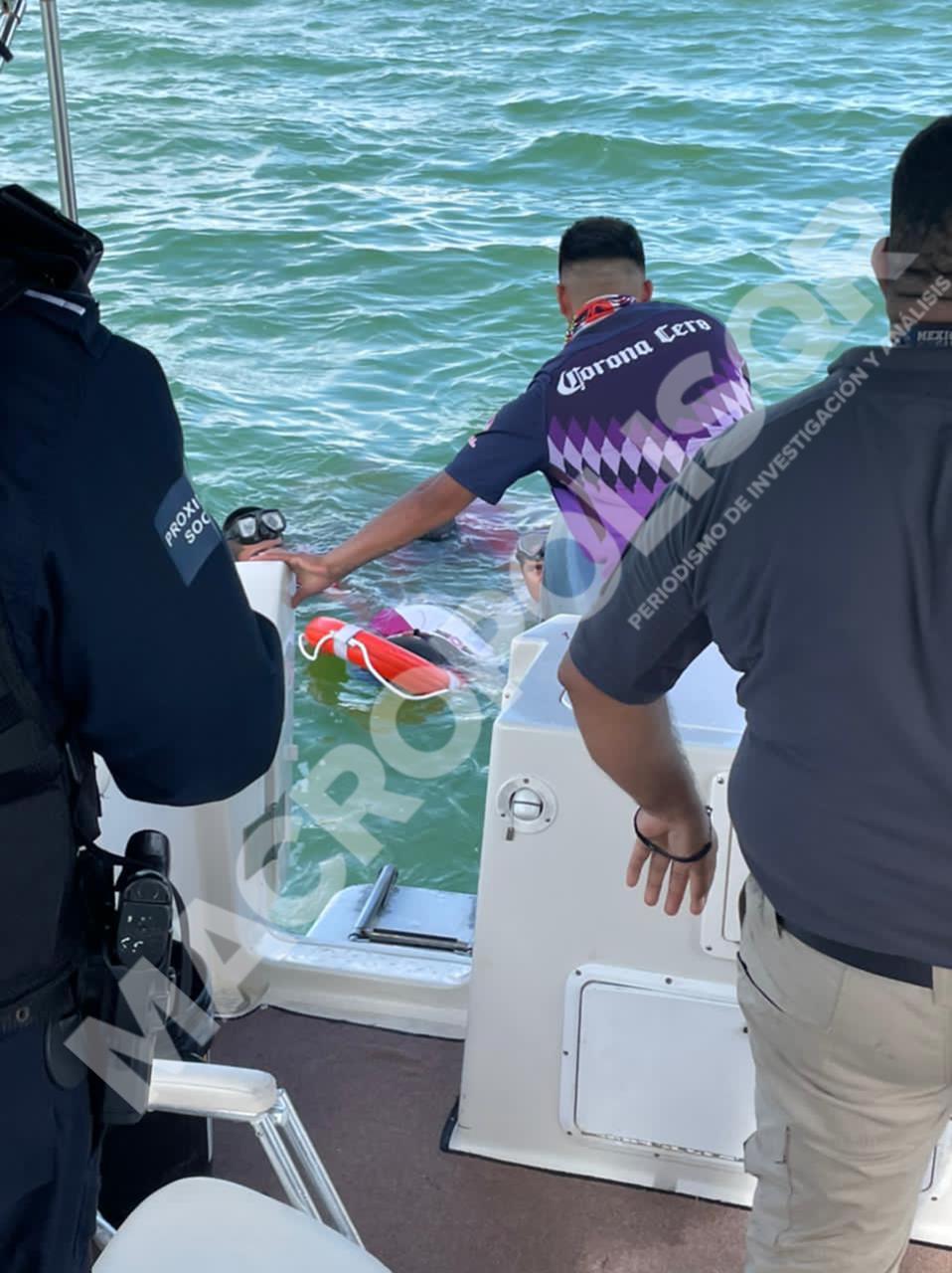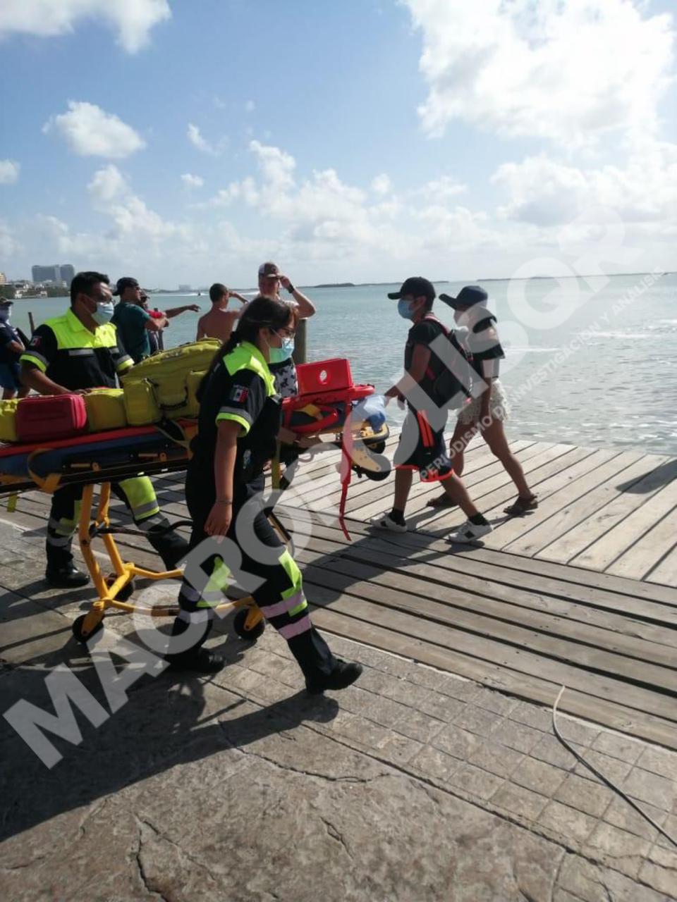 Personas que se percataron del desplome de la nave se trasladaron en motocicletas acústicas para auxiliar a los sobreviventes, después una embarcación los traslado hasta un muelle frente plaza Kukulcan, donde fueron examinados por paramédicos de Heart.