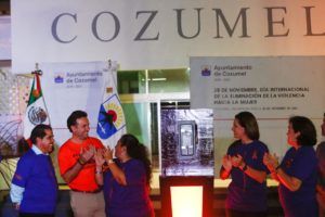 Acompañado de su esposa Mary Mar Abad de Joaquín, Presidenta del Sistema DIF Cozumel, el Presidente Municipal conmemora el Día Internacional de la Eliminación de la Violencia contra la Mujer