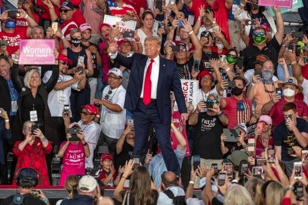 El presidente de Estados Unidos, Donald Trump, saluda a sus seguidores durante un mitin de campaña realizado el mes pasado en el Aeropuerto Internacional de Sanford, Florida (EFE)