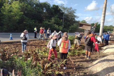 “Hoy llevamos 3 mil ejemplares; 2 mil 420 plantas y 580 de ornato, sobre el tramo que va de La Moneda al filtro policiaco hacia Tulum, donde además se distribuye grava y triturado. Xcaret sumó su participación al programa con la plantación de 165 ceibas adultas y jóvenes para embellecer la zona”, indicó la titular.