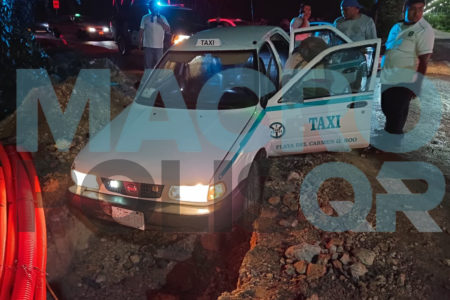 Playa del Carmen (Macropolis QR).- El conductor en estado de ebriedad de un taxi local, perdió el control al salir del fraccionamiento El Edén y cayó en una zanja.