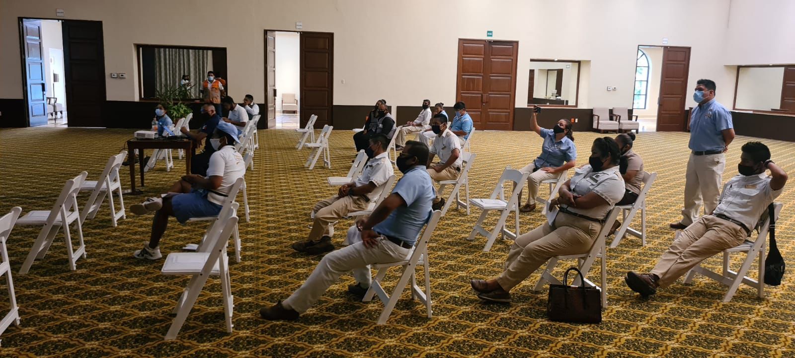 El taller fue impartido bajo protocolos de prevención sanitaria por la rescatista, Sandra Amescua, en temas como que hacer antes, durante y después de un huracán y si el hotel es utilizado como refugio, al igual que primeros auxilios y atención de emergencias. Asimismo se supervisa que los establecimientos cuenten con extintores, salida de emergencia, botiquín entre otros aspectos de seguridad.