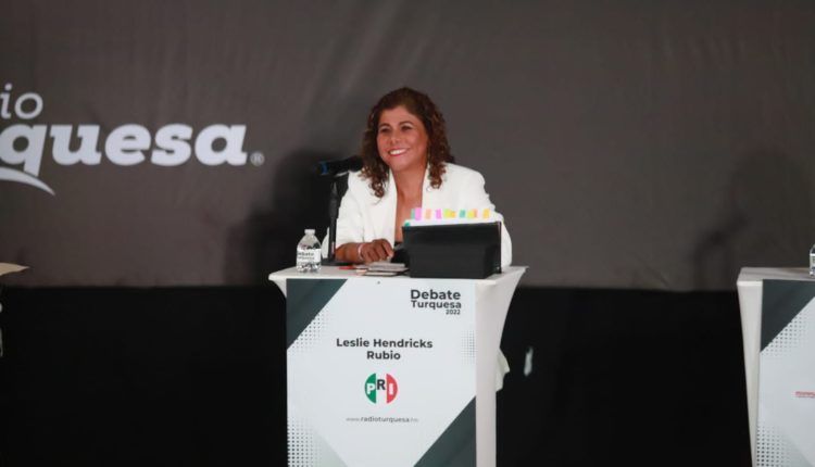 Cancún.- En el debate organizado por Grupo Turquesa; Leslie Hendricks Rubio, candidata del Partido Revolucionario Institucional, participó en este encuentro con los quintanarroenses, donde demostró nuevamente su experiencia, valores y vocación de servicio.