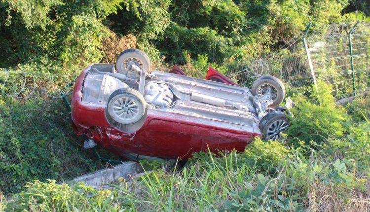 Playa del Carmen.- Fuerte percance vehicular se registró sobre la carretera federal 307 en la tarde cuando el conductor de un vehículo particular perdió el control al volante y volcó sobre un área verde afortunadamente y resultó golpeado sin tener que ser trasladado algún hospital.