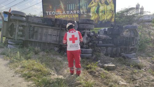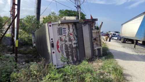 El hecho ocurrió en dirección de Sur a Norte, a escasos metros del filtro uno rumbo a cancun, alrededor de las 5:00 de la tarde, cuando entro el reporte a la línea de emergencia 911, sobre un trailer volcado.