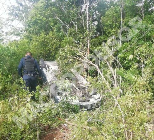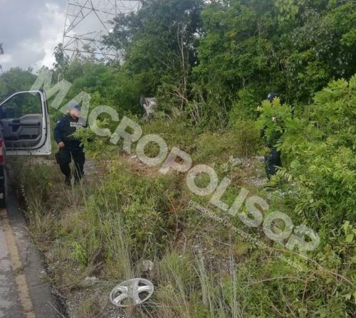 Cancún, Quintana Roo, 17 de septiembre 2020.-Un aparatoso accidente se registró la mañana de hoy, cuando el conductor de un auto Nissan Sentra perdió el control y terminó volcado entre la maleza; tras el incidente se dio a la fuga.