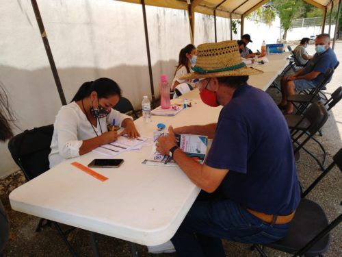 Leona Vicario, Puerto Morelos, Quintana Roo, 19 de abril de 2021.- Este lunes inició la aplicación de la segunda dosis de la vacuna contra Covid-19 a los adultos mayores del municipio, que ya habían sido inoculados con el fármaco de AstraZeneca en febrero pasado.