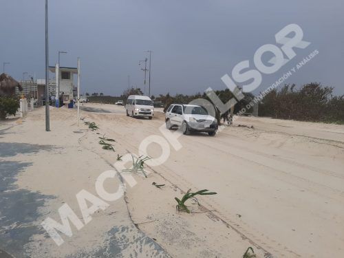 En Cancún, una capa de arena sobre el bulevar Kuculcán pintó de blanco la carretera frente a las playas Gaviota Azul y Delfines, palmeras que fueron derrumbadas por los fuertes vientos y algunos comercios con daños en su estructuras, así como algunas pérdidas en la zona de desove de tortugas, con algunos huevos que no sobrevivieron a los embates de la naturaleza.