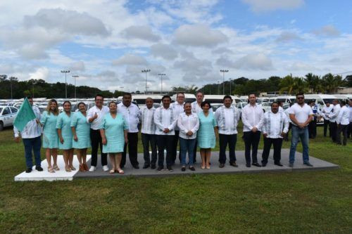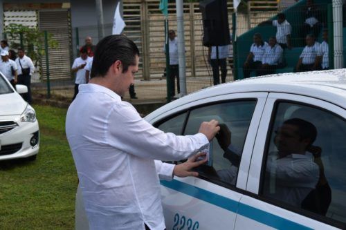 Playa del Carmen.- Integrantes del sindicato de Taxistas de Solidaridad “Lázaro Cárdenas del Río”, encabezados por secretario general Luis Armando Herrera Quiam, en conjunto con la Secretaria de Gobierno del Estado, Cristina Torres Gómez; el director general del IMOVEQROO, Rodrigo Alcazar Urrutia, y el delegado inmoveqroo en solidaridad David Cosgaya Mena, dieron el banderazo de salida al proyecto “Taxi Seguro”.