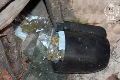 Peritos especializados procesaron el lugar en donde fueron encontradas once bolsitas de nailon transparentes que contenían vegetal verde seca –al parecer marihuana y una báscula gramera, que fueron puestos a disposición de la Fiscalía Especializada en Investigación de Delitos Contra la Salud en su Modalidad de Narcomenudeo.