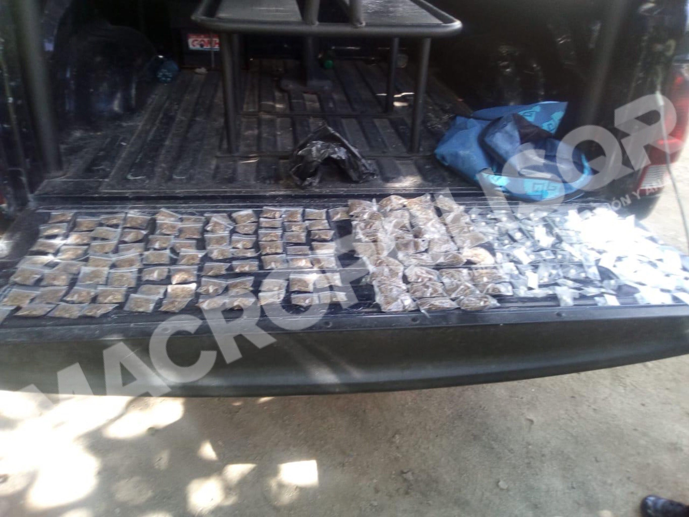 Además, había una bolsa negra de plástico con 112 envoltorios de plástico que contienen yerba verde y seca con el olor característico de marihuana.