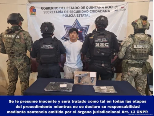 Playa del Carmen, Quintana Roo.– Una serie de operativos coordinados entre la Secretaría de Seguridad Ciudadana (SSC), la Secretaría de Marina (Semar) y la Secretaría de la Defensa Nacional (Sedena) derivaron en múltiples detenciones y el aseguramiento de droga, un arma de fuego y motocicletas con reporte de robo en distintos municipios del estado.