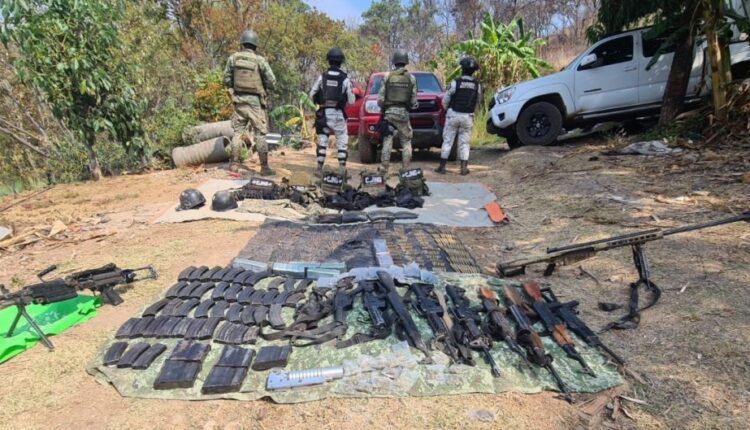 Michoacán.- Autoridades decomisaron un arsenal en un campamento utilizado por presuntos integrantes del Cártel Jalisco Nueva Generación (CJNG), en el municipio de Uruapan, uno de los más violentos del estado.
