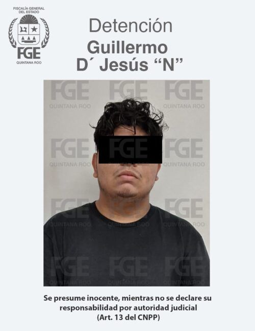 La primera diligencia tuvo lugar en un inmueble ubicado en avenida Isla Contoy esquina Sierra, de la colonia La Gloria, municipio de Isla Mujeres, donde los agentes participantes lograron asegurar bolsas que contenían hierba seca de color verde, parecida a la marihuana, material sólido color beige y la cantidad de 20 mil pesos en efectivo. A pocos metros del lugar detuvieron a un masculino identificado como Guillermo D’ Jesús “N”.