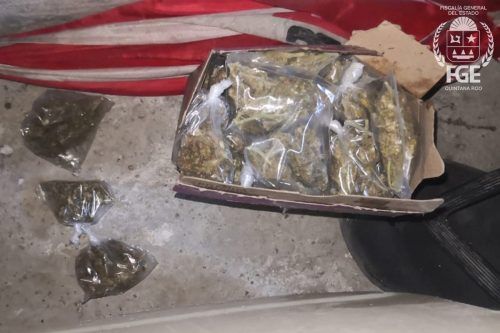Los elementos de la Policía de Investigación ingresaron al inmueble y encontraron bolsas de plástico con material vegetal verde y seco, con las características similares a la marihuana, además de un papel con un mensaje dirigido a dos elementos policiacos.