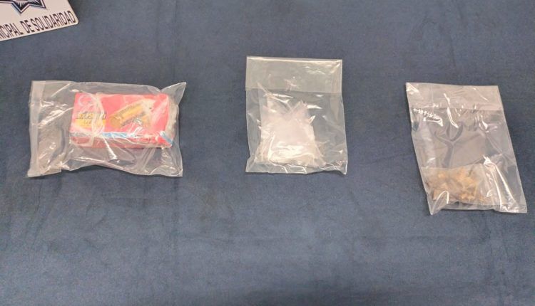 Luego de inspeccionar la zona y descartar la presencia de armas, los policías encontraron 9 envoltorios con una sustancia al parecer cristal, un envoltorio con un vegetal con las características de la marihuana y una caja emplayada que fueron asegurados y puestos a disposición de la Fiscalía General del Estado, para el deslinde de responsabilidades.