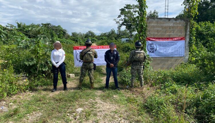 Cancún.— La Fiscalía General del Estado, con apoyo de la Secretaría de Marina, aseguró un predio en los límites de la delegación Alfredo V. Bonfil, tras confirmar la devastación total de una superficie aproximada de 30 mil metros cuadrados, intervenida sin un solo permiso municipal o estatal.