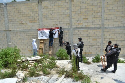 Durante la diligencia, en la que también participaron elementos de la Secretaría de Marina y Guardia Nacional, constataron que el predio cuenta con vialidades y caminos de acceso, los cuales fueron rellenados y compactados con material pétreo.