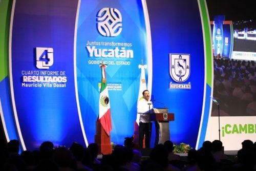 Playa del Carmen.- La presidenta municipal de Solidaridad, Lili Campos atestiguó el IV Informe de Gobierno del gobernador de Yucatán, Mauricio Vila Dosal, en el que también estuvo presente el presidente nacional del Partido Acción Nacional (PAN), Marko Cortés Mendoza.