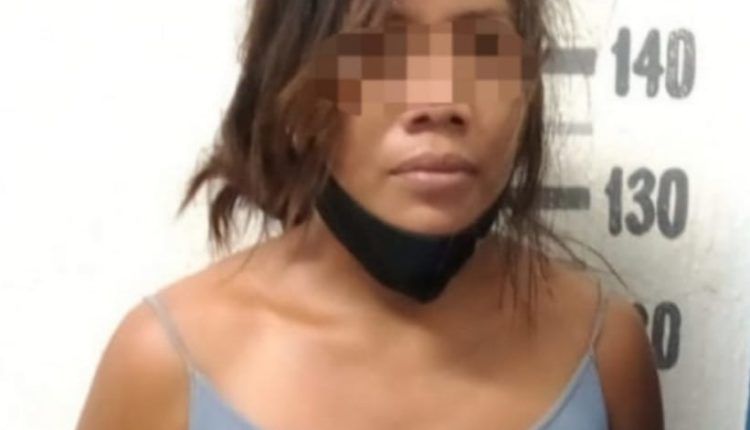Playa del Carmen, Solidaridad a 29 de octubre de 2021.- Policías de la Secretaría de Seguridad Pública y Tránsito Municipal de Solidaridad, aseguraron a una mujer por la posible comisión del delito de violencia familiar, tras ser señalada por su cónyuge de provocar una herida cortante a su hijo menor de edad.