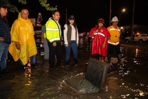La presidenta municipal Estefanía Mercado recorre puntos críticos de la ciudad afectados por la intensa lluvia de este jueves