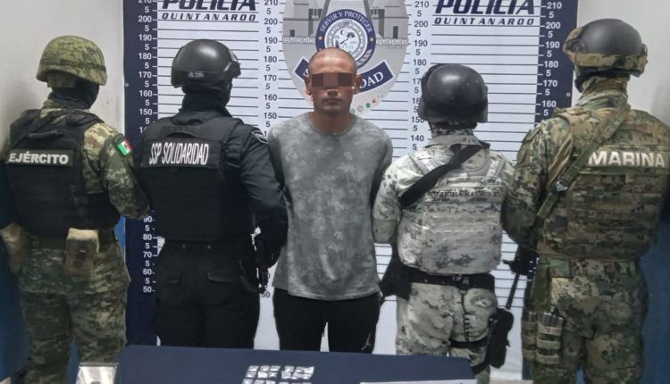 Playa del Carmen.- Durante el operativo Colonia Segura desplegado a través del Grupo de Coordinación para la Construcción de Paz y Seguridad en Quintana Roo, se logró la detención de un sujeto en posesión de 26 bolsitas con posibles narcóticos en la colonia Colosio.