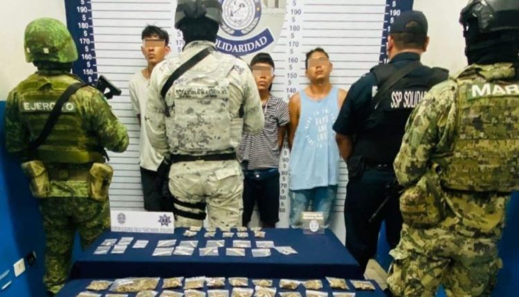 Esta acción es resultado del trabajo conjunto entre Policía Municipal, SEDENA, SEMAR, Guardia Nacional y Policía Quintana Roo, quienes encontraron entre las pertenencias de los asegurados 9 cartuchos útiles, 53 bolsas con posible marihuana, 5 bolsas con la posible droga llamada LSD, 2 bolsas con polvo blanco al parecer cocaína y 4 bolsas con la posible droga conocida como piedra.