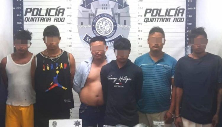 Playa del Carmen.- Durante un operativo de seguridad y prevención de delitos, policías de la Secretaría de Seguridad Pública y Tránsito Municipal de Solidaridad aseguraron a seis sujetos y mas de 100 envoltorios con posibles drogas como cocaína, cristal, crack, pastillas y marihuana en el fraccionamiento La Guadalupana.