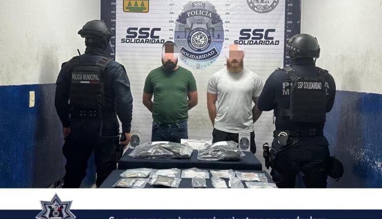 Solidaridad, Quintana Roo.- La Secretaría de Seguridad Ciudadana Municipal (SSCM) de Solidaridad informó sobre la detención de dos personas durante un operativo realizado en la colonia Ejidal. Los detenidos, identificados como Mikael N., de 37 años, y Steeven N., de 27 años, ambos originarios de Canadá, fueron asegurados con 35 posibles dosis de narcóticos, tres teléfonos celulares y una cantidad de dinero en efectivo.