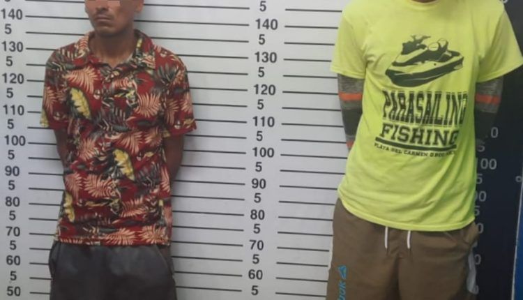 Playa del Carmen.- Policías de la Secretaría de Seguridad Pública y Tránsito Municipal de Solidaridad en conjunto con la Guardia Nacional y la Secretaría de Marina, aseguraron a dos sujetos en posesión de 13 bolsitas de diversos narcóticos en la zona de playas en Playacar.